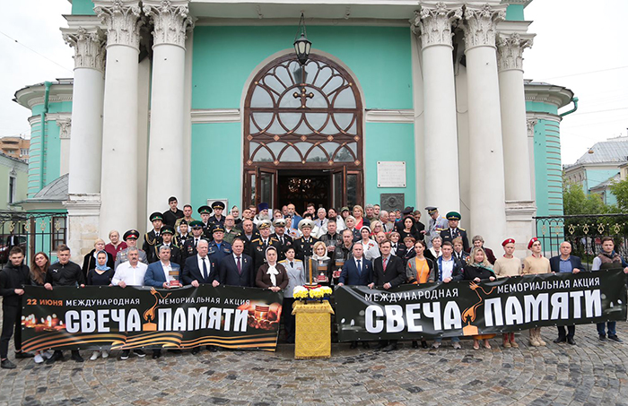 В 14.00 по сложившейся традиции в Елоховском Богоявленском кафедральном соборе в Москве были зажжены главная Свеча Памяти и свечи всех бывших республик СССР, городов-героев, городов воинской славы России, прошла панихида по погибшим воинам, защитившим Отечество.