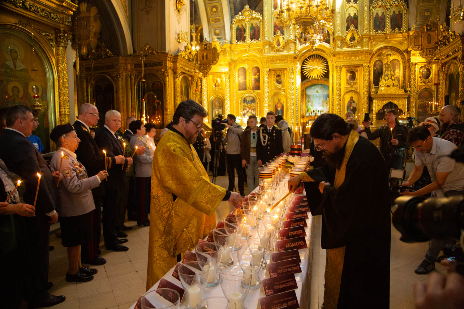 «Вечная память всем воинам, жизнь свою отдавшим на поле брани, самое драгоценное, что имели для того, чтобы мы имели то Отечество, что имеем. Вечная память всем тем, кто трудился в тылу во благо Победы. Прошу всех вас от сердца и души вознести молитву к Богу. Память о наших предках будет жива, пока мы будем о них помнить. Нам с вами необходимо передать память о славных подвигах и Победе будущему поколению»