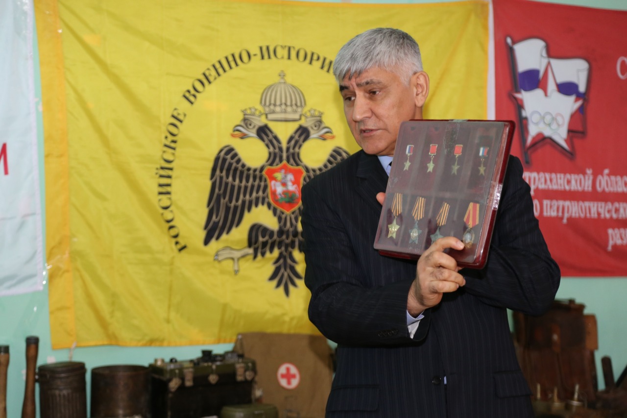 В ходе встречи председатель Астраханской областной общественной организации по патриотическому, правовому и физическому развитию молодежи Александр Даиров и представители поисковых отрядов «Дельта», «Патриот», «Память» рассказали школьникам о Великой Отечественной войне, войне в Афганистане и на Донбассе, о работе общественных организаций в области патриотического воспитания и увековечения памяти погибших при защите Отечества, в том числе регионального отделения «Бессмертный полк России». Они призвали молодых ребят и девчат включится в эту благородную работу.