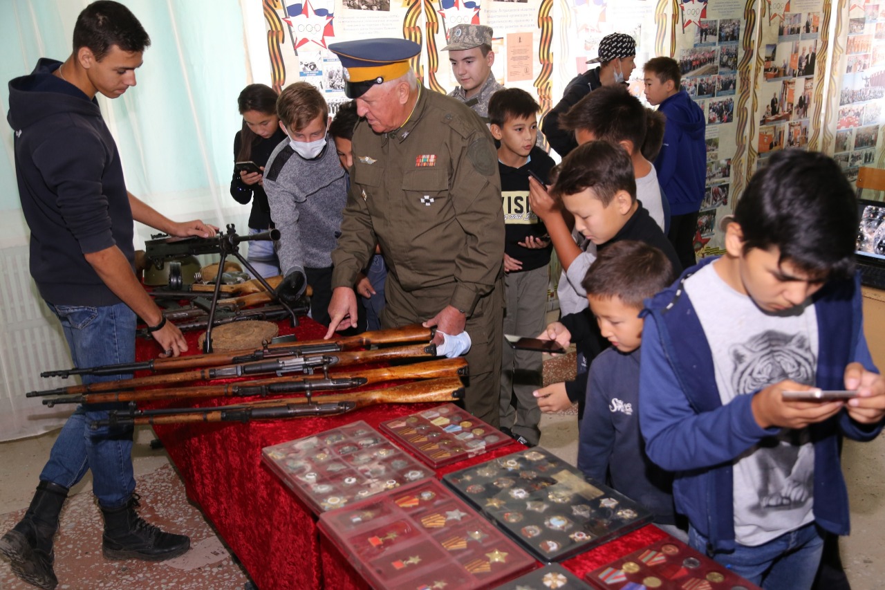 Учащимся были продемонстрированы кадры военной кинохроники, патриотические документальные фильмы, а также представлена фотовыставка «Мы этой памяти верны», выставка оружия, военных экспонатов и государственных наград времен Великой Отечественной войны.