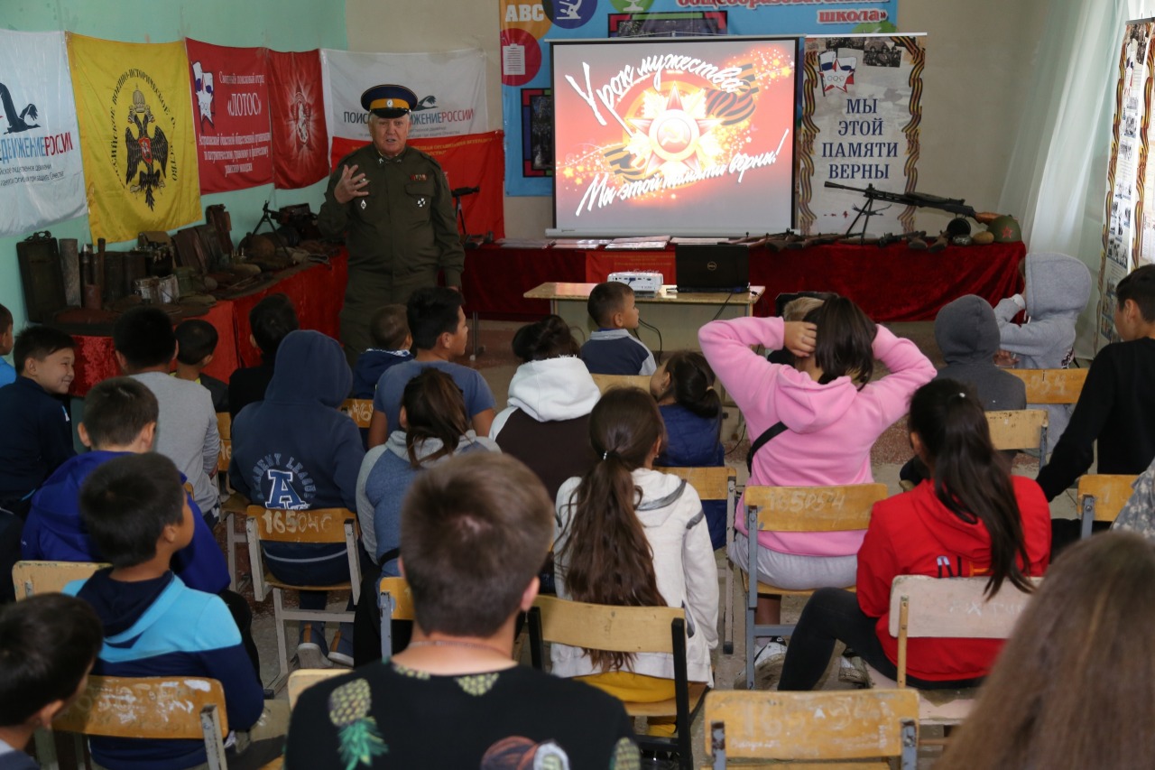 19 сентября Астраханская областная общественная организация по патриотическому, правовому и физическому развитию молодежи, региональные отделения ООД «Поисковое движение России» и «Бессмертный полк России» при поддержке администрации муниципального образования поселок Винный Володарского района Астраханской области и поселковой школы организовали и провели для учащихся в 5-9 классов урок мужества «Мы этой памяти верны».