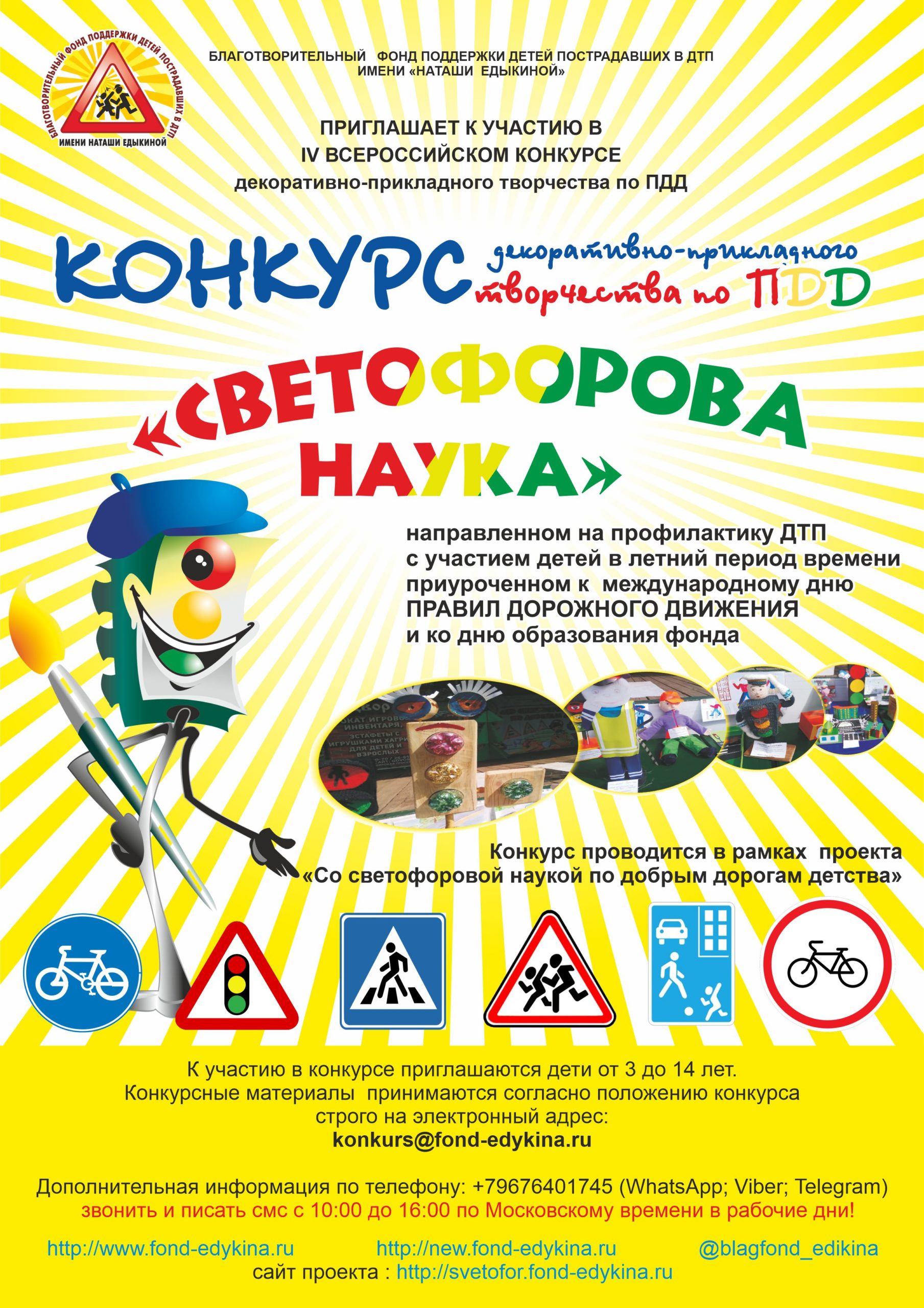 Благотворительный фонд поддержки детей, пострадавших в ДТП, имени Наташи Едыкиной с 19 июля по 19 августа 2021 года проводит Всероссийский конкурс декоративно-прикладного творчества по правилам дорожного движения (ПДД).