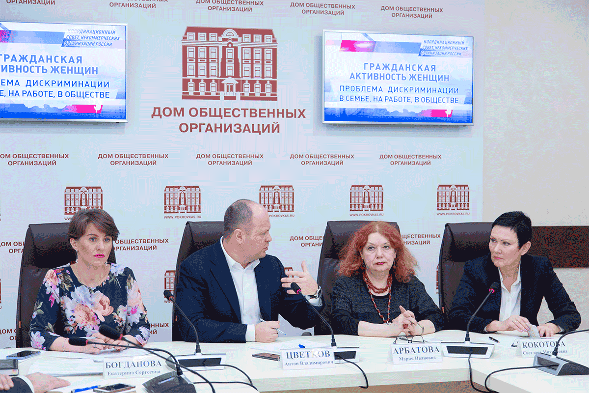 Координационный совет некоммерческих организаций России (КС НКО) провёл во вторник 2 апреля круглый стол «Гражданская активность женщин. Проблема дискриминации в семье, на работе, в обществе». Встреча состоялась в Доме общественных организаций в Москве.