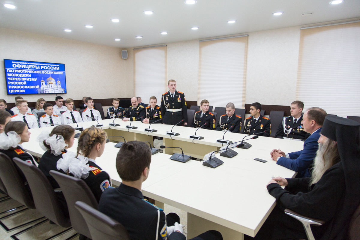 Инок Киприан рассказал кадетам о своем жизненном пути, войне в Афганистане, боевых товарищах, встречах с молодежью и выразил уверенность, что духовность является основой патриотического воспитания.