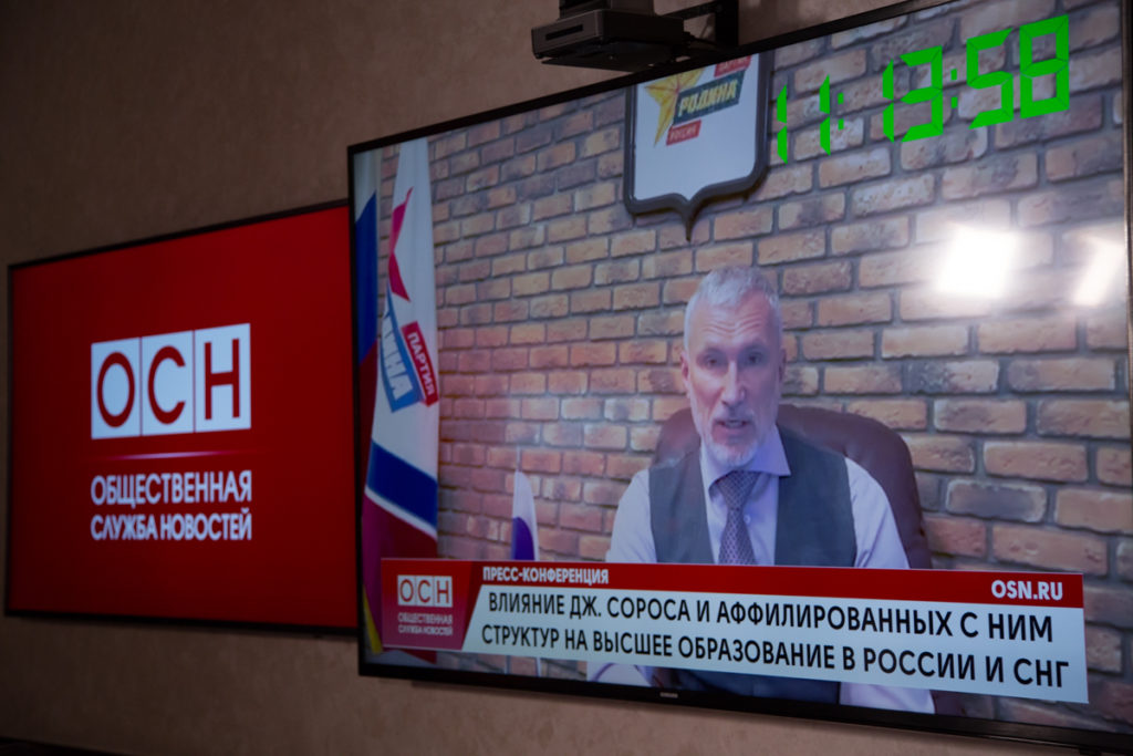 – Катализатором для проведения этой пресс-конференции стала информация о создании некоего института, который потенциально может финансировать одна из структур Сороса. Мы сегодня обсудим этот вопрос, обсудим ситуацию в целом о полезности или негативном эффекте западного финансирования отечественного образования, и в частности высшего образования. Мы прекрасно понимаем, что структура Сороса нанесла достаточно непоправимый вред в России через систему образования ряда зарубежных стран.