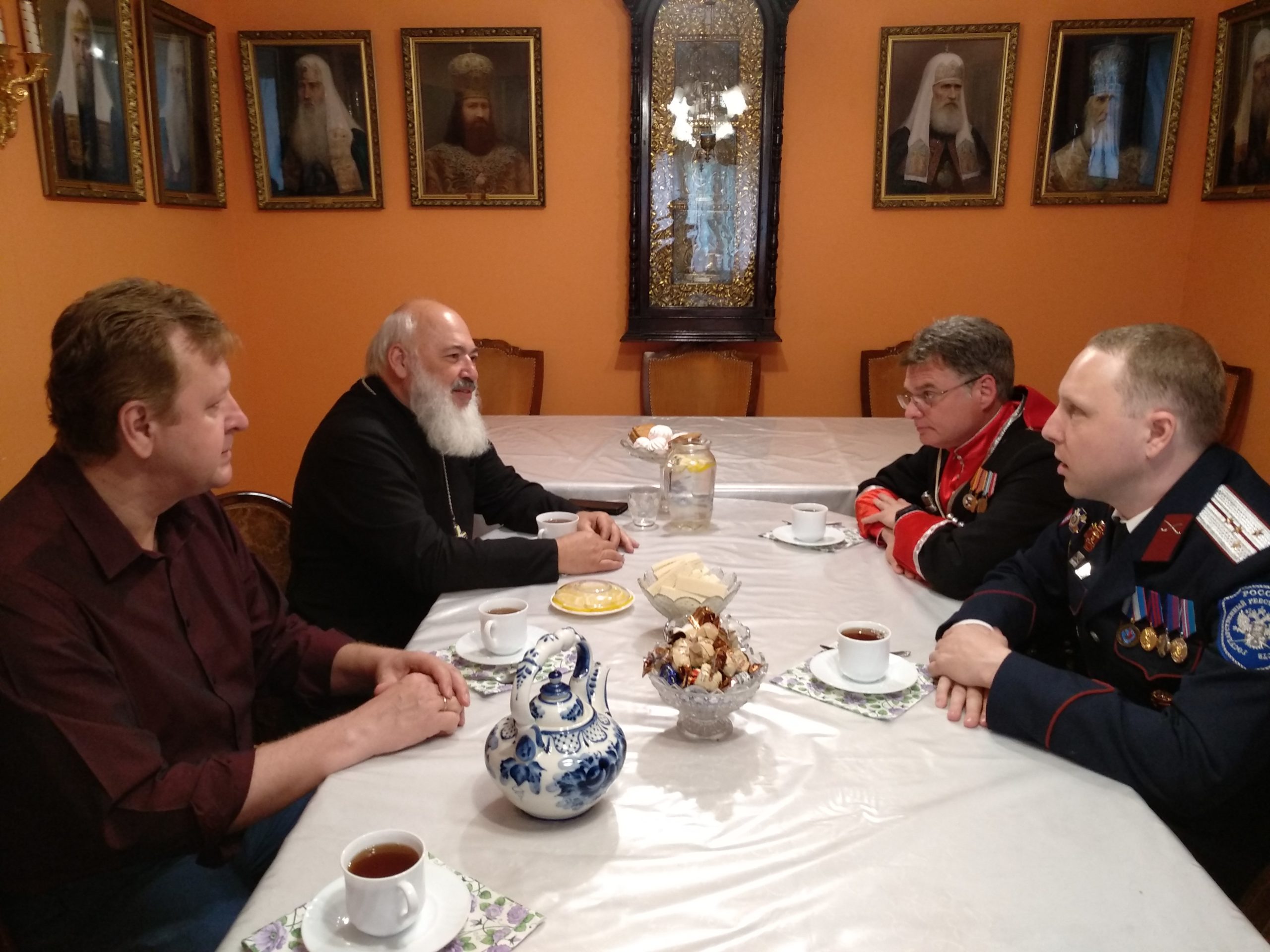 Проведение Фестиваля казачьей культуры обсудили в ходе встречи настоятеля храма Рождества Пресвятой Богородицы во Владыкино Сергия Ткаченко, главы управы района Останкино СВАО города Москвы Геннадия Горожанкина и атамана хуторского казачьего общества «Бутырский» МОКО ВКО «ЦКВ» Олега Пестова. Об этом сообщается на сайте Московского окружного казачьего общества.