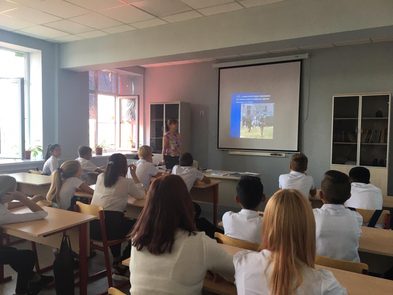 В ходе урока ребята узнали, какая ужасная трагедия случилась в Северной Осетии 1 сентября 2004. В школе №1 небольшого города Беслан во время торжественной линейки, посвященной началу учебного года, террористы захватили в заложники более 1100 человек – преимущественно детей, их родителей и сотрудников школы – и почти трое суток удерживали их без еды и воды. Погибли 334 человека, из них 186 – дети. Головы в бою за жизни заложников сложили десять сотрудников Центра специального назначения ФСБ, 15 сотрудников МВД и двое МЧС. В 40-тысячном городе трагедия коснулась каждой семьи. Сегодня эту трагедию помнит и переживает весь мир.