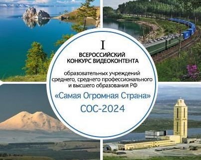13 января стартовал I-й Всероссийский конкурс видеоконтента образовательных учреждений среднего, среднего профессионального и высшего образования «Самая огромная страна». Конкурс будет проводиться с января по май 2024 года. Участие в конкурсе принимают команды учащихся (не более 10 человек) образовательных учреждений среднего, среднего профессионального и высшего образования РФ.