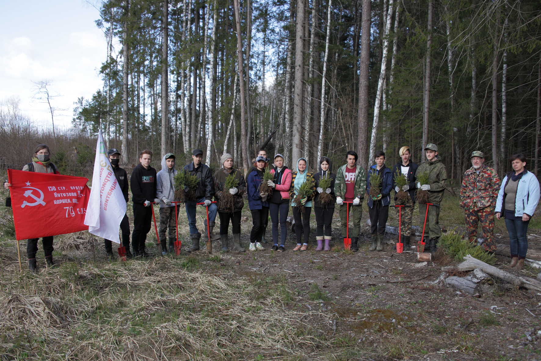 28 апреля работали любители природы из двух кировских школ – Воскресенской и Шайковской №1, школы №6 города Людиново и Барятинской школы села Барятино. Эти четыре команды, сменяя друг друга через 1,5 часа работы, высадили 10 тыс. сеянцев ели на площади 2,8 гектаров.