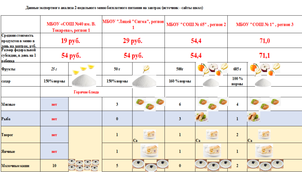 Эксперт также привел примеры значительных различий меню.